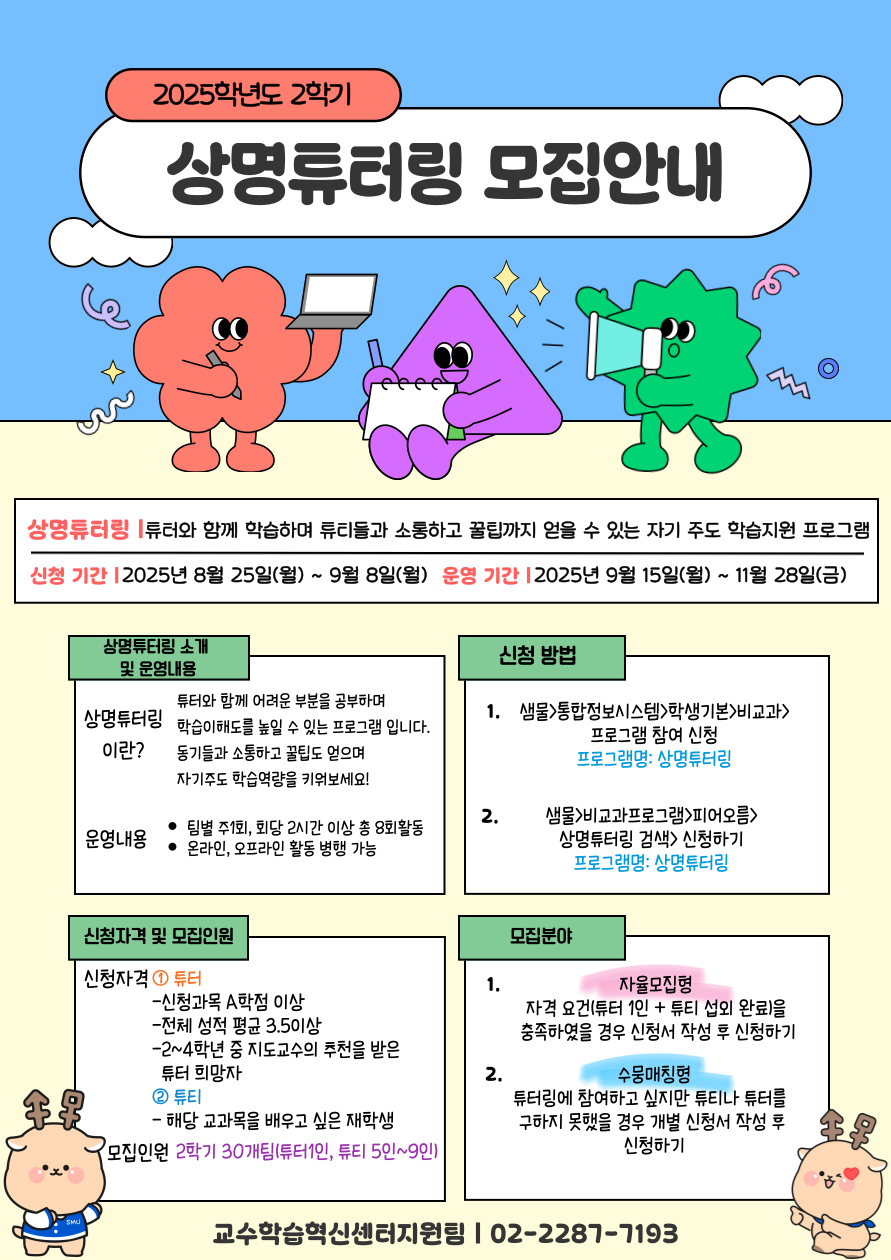 서울 [비교과] [교수학습혁신센터지원팀(서울)] 2025학년도 2학기 상명튜터링 모집 안내 -